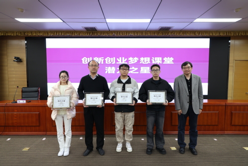 在梦想课堂颁奖环节,我校8位学员获得梦想课堂“勤勉之星”奖,4个项目获得“潜力之星”奖,张玉波副书记和张金生董事长分别为获奖学员和项目颁奖。
