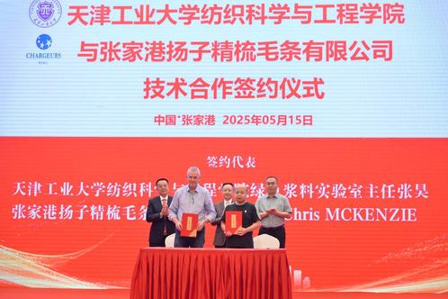 在张家港扬子精梳毛条有限公司成立30周年庆典暨张家港羊毛商会第45次羊毛沙龙上,林立刚代表学校致辞,张家港羊毛商会及全国羊毛行业企业家400余人参加会议。会上,分别举行了学校与张家港羊毛商会深化新时代“纺织强国”育人共同体建设签约仪式,纺织科学与工程学院与张家港扬子精梳毛条有限公司技术合作签约仪式。商会会长、纪前龙博士受聘经济与管理学院研究生企业导师。
